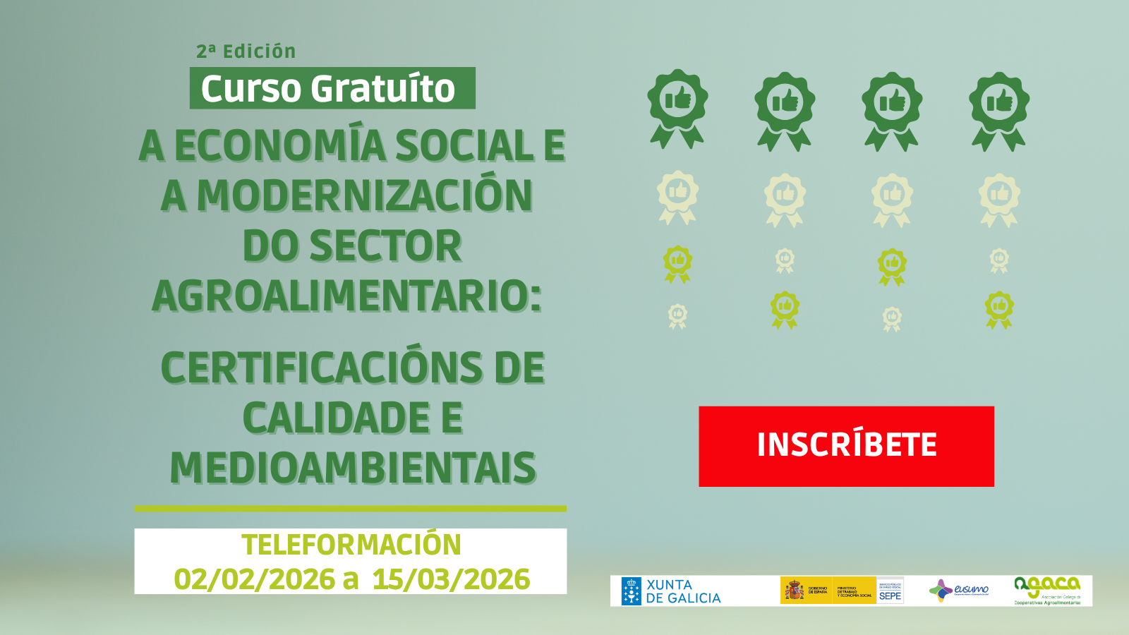 - El 2 de febrero comienza la segunda edición del curso gratuito “La economía social y la modernización del sector agroalimentario: certificaciones de calidad y medioambientales”, que se puede seguir online. Concluye el 15 de marzo de 2026.
