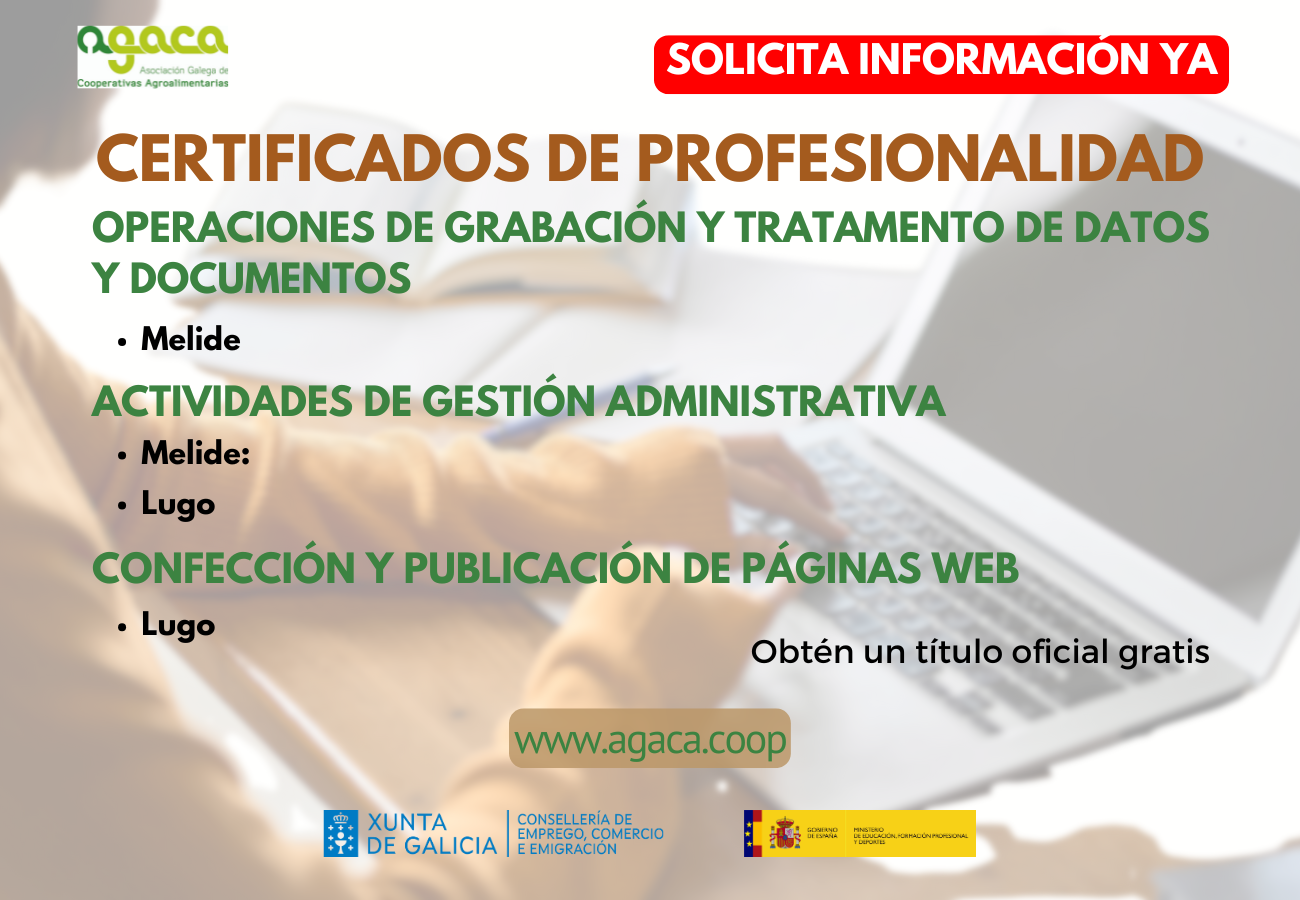 También puedes llamarnos para informarte al 611 020 719 (Departamento de Formación AGACA).