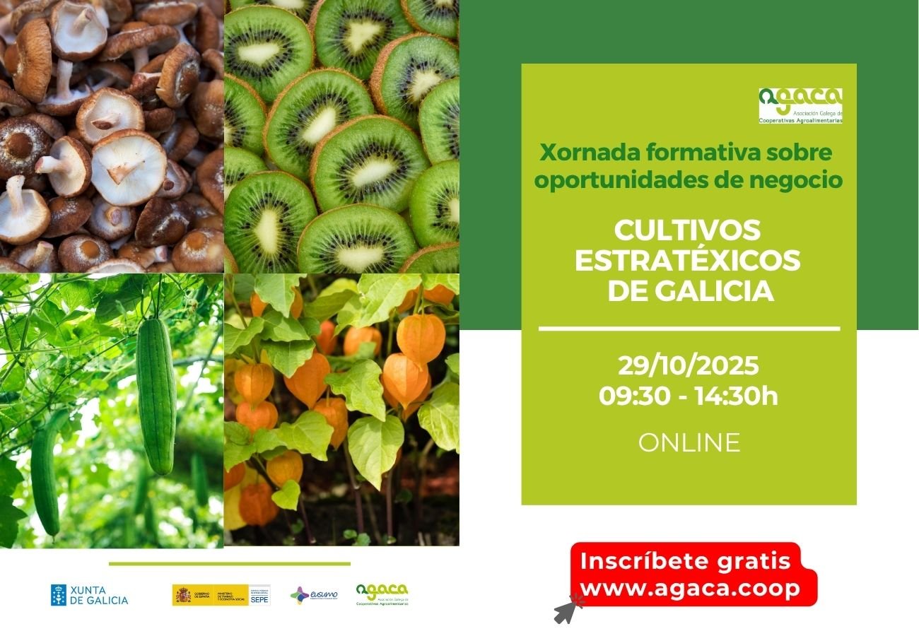 - El 29 de octubre tendrá lugar una nueva sesión del ciclo 2025 de Jornadas formativas sobre oportunidades de negocio, dedicada a los cultivos estratégicos en Galicia.