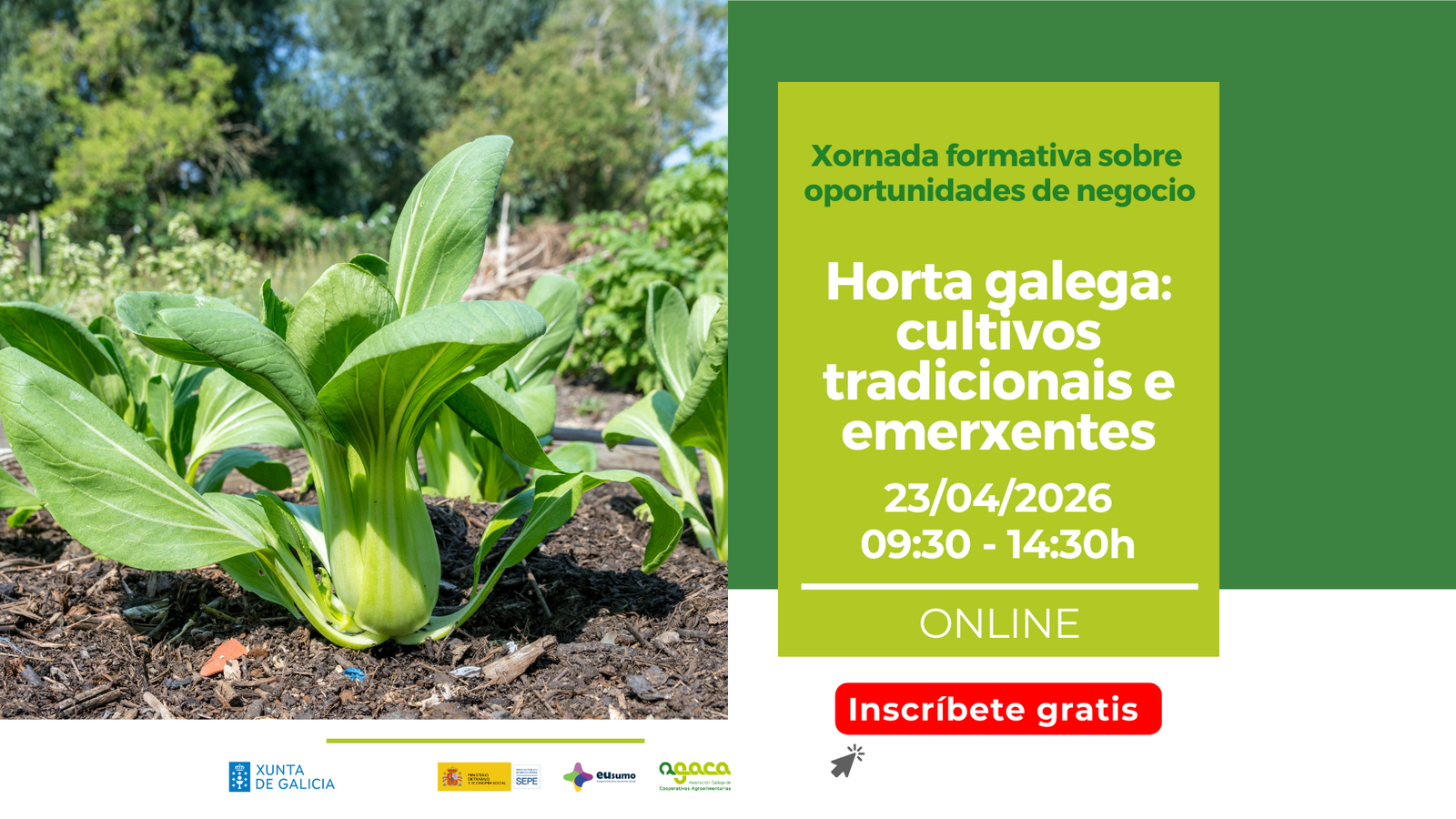 - El 23 de abril tendrá lugar la sexta sesión del ciclo 2026 Jornadas formativas sobre oportunidades de negocio, con el título “Huerta gallega: cultivos tradicionales y emergentes”.