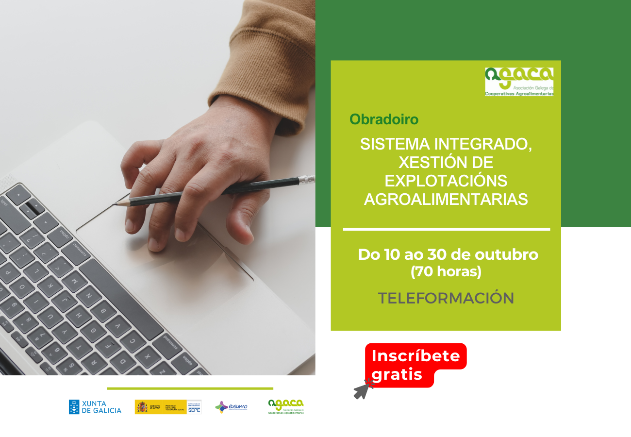 • Del 10 al 30 de octubre se puede seguir, en modalidad de teleformación, el obradoiro “Sistema integrado, gestión de explotaciones agroalimentarias”.