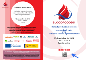 O Grupo Operativo Blood4Goods llevará a cabo el próximo jueves 16 de octubro una nueva jornada divulgativa en la que se darán a conocer los avances del proyecto que promueve la valorización de los residuos generados por la sangre de vacuno y porcino que permitirá incrementar la circularidad de los mataderos.