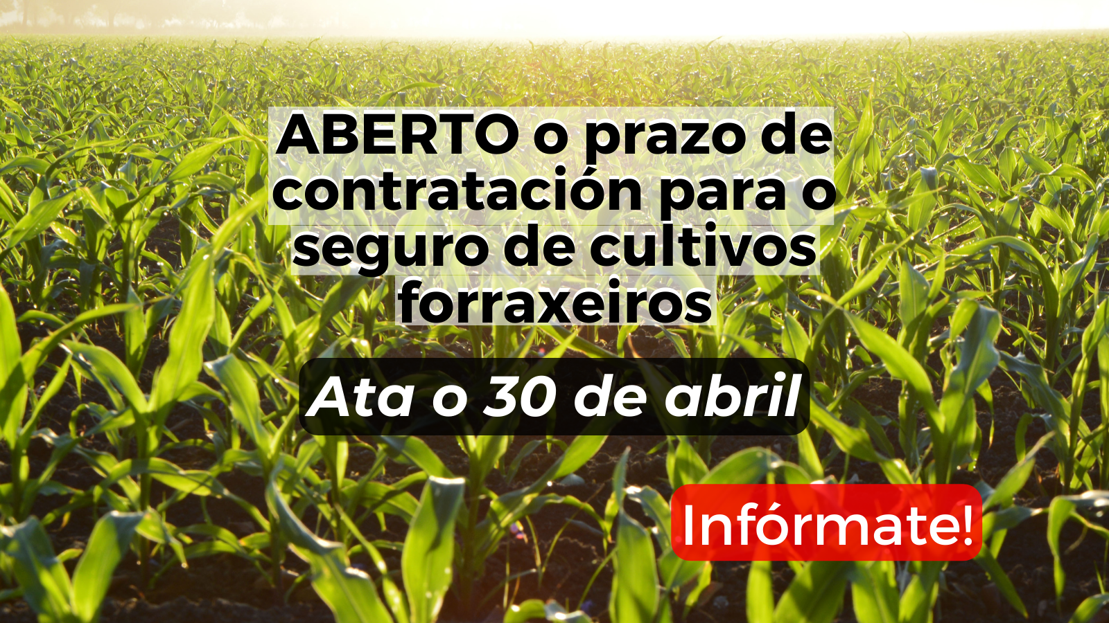 Asegura os teus cultivos forraxeiros (millo, alfalfa, veza, cereais de inverno, pastos e outros cultivos).