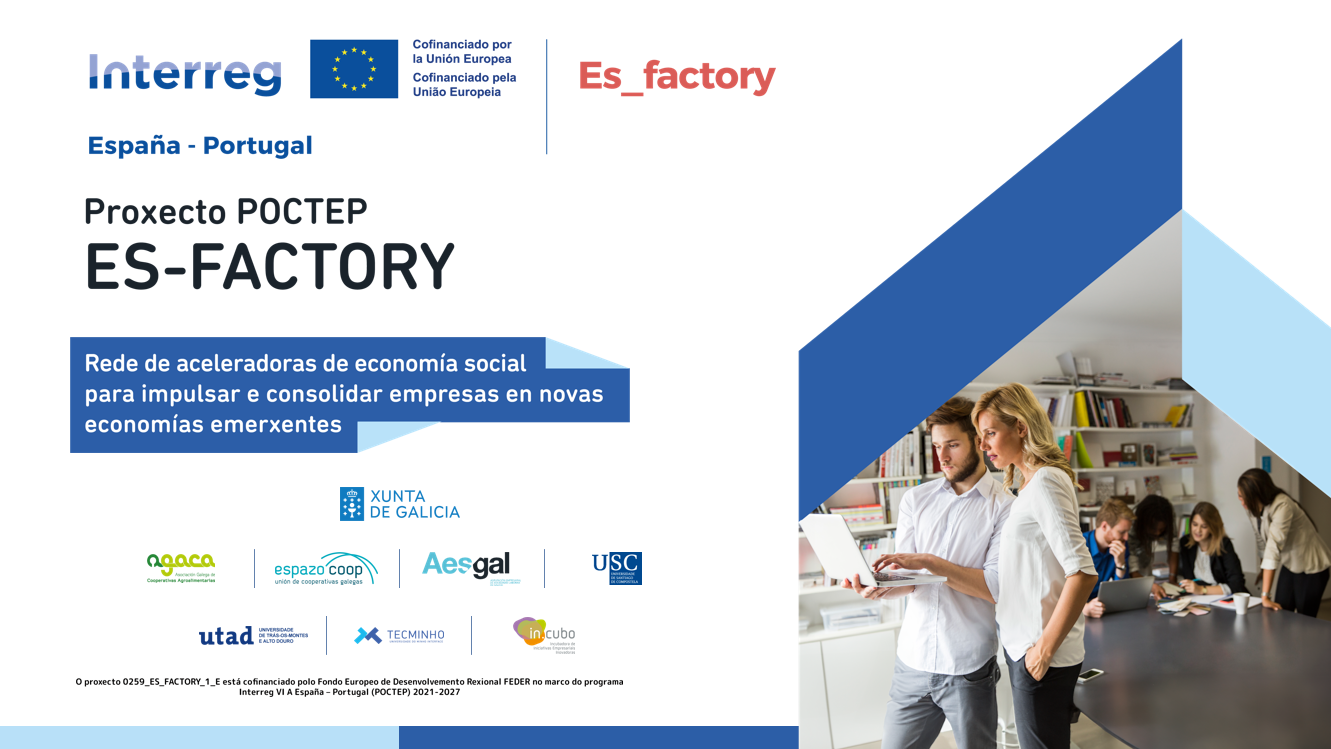 O proxecto ES-Factory ten como obxectivo o impulso e consolidación de emprego de calidade en novas actividades emerxentes do territorio transfronteirizo que se vaian a desenvolver a través da economía social.