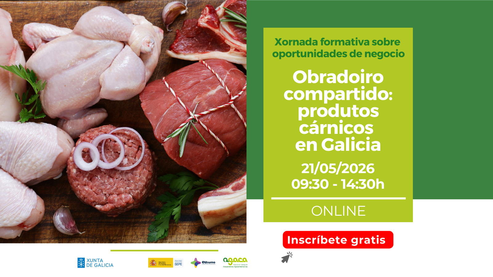 - O 21 de maio terá lugar a oitava sesión do ciclo 2026 Xornadas formativas sobre oportunidades de negocio, co título “Obradoiro compartido de produtos cárnicos en Galicia”.