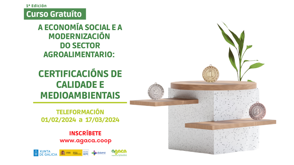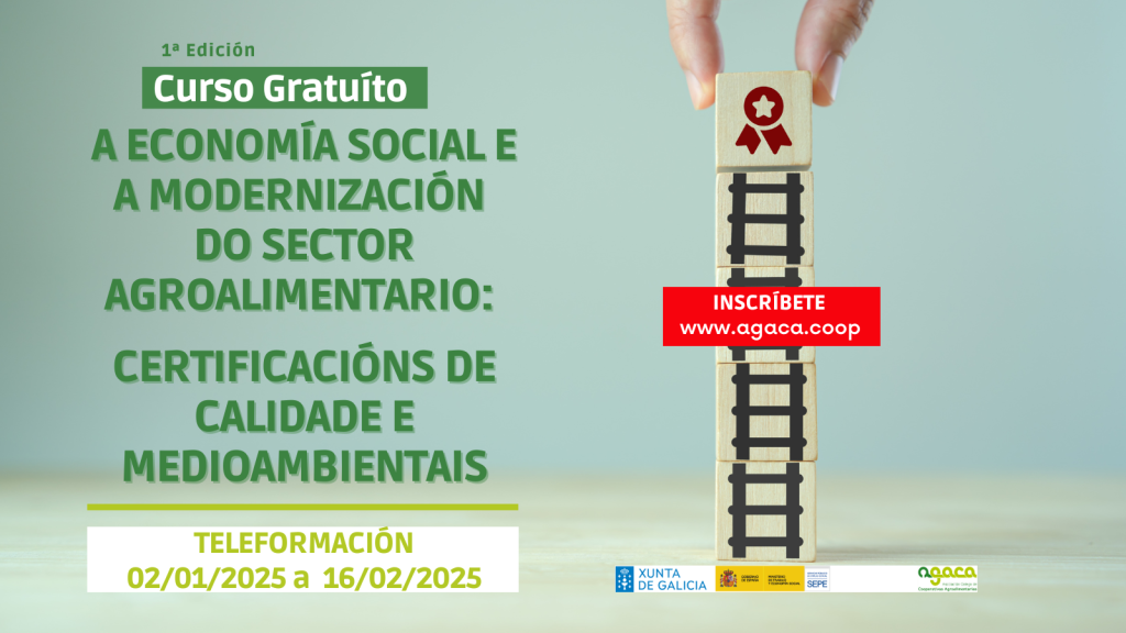 O 2 de febreiro comeza a segunda edición do curso gratuíto “A economía social e a modernización do sector agroalimentario: certificacións de calidade e medioambientais”, que se pode seguir online. Remata o 15 de marzo de 2026. A inscrición pode realizarse nesta ligazón. A Asociación Galega de Cooperativas Agroalimentarias (AGACA) continúa co seu programa de […]