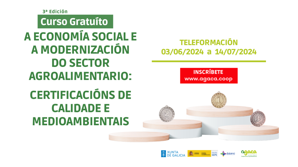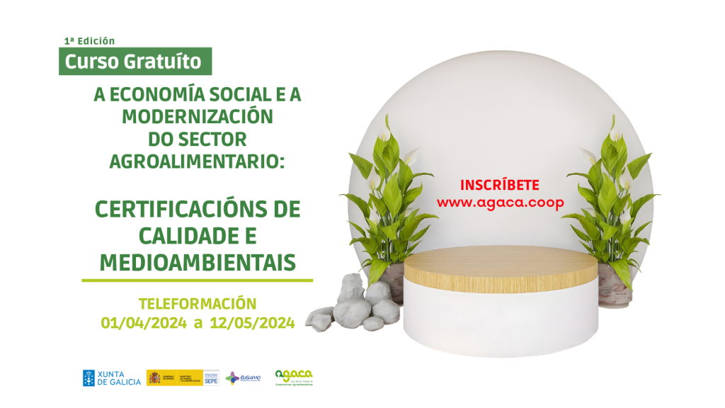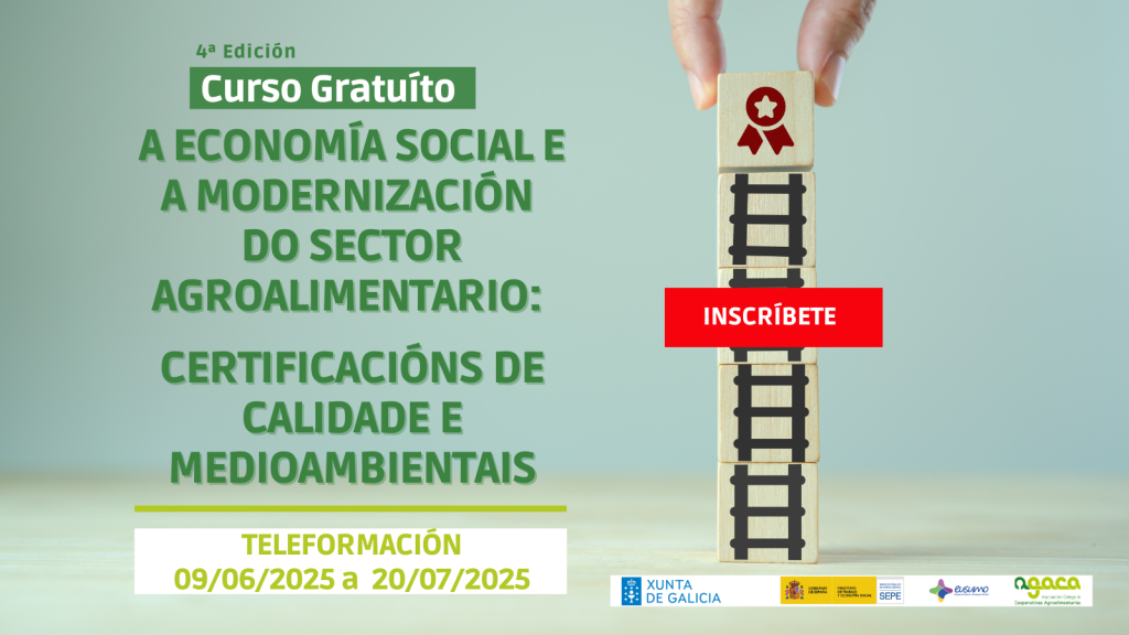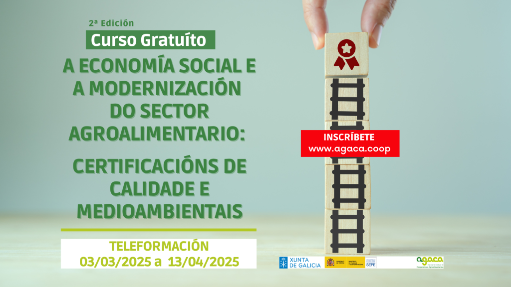O 6 de abril comeza a terceira edición do curso gratuíto “A economía social e a modernización do sector agroalimentario: certificacións de calidade e ambientais”, que se pode seguir en liña. Conclúe o 17 de maio de 2026. A inscrición pode realizarse nesta ligazón. A Asociación Galega de Cooperativas Agroalimentarias (AGACA) continúa o seu labor formativo, […]