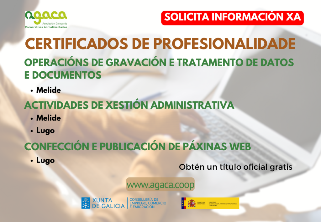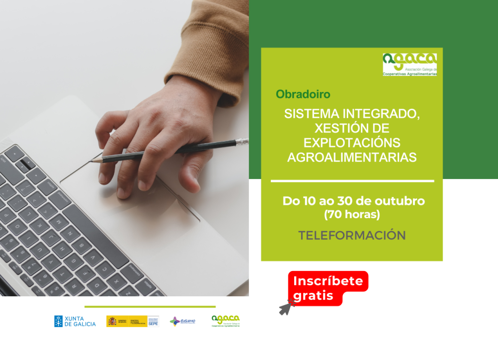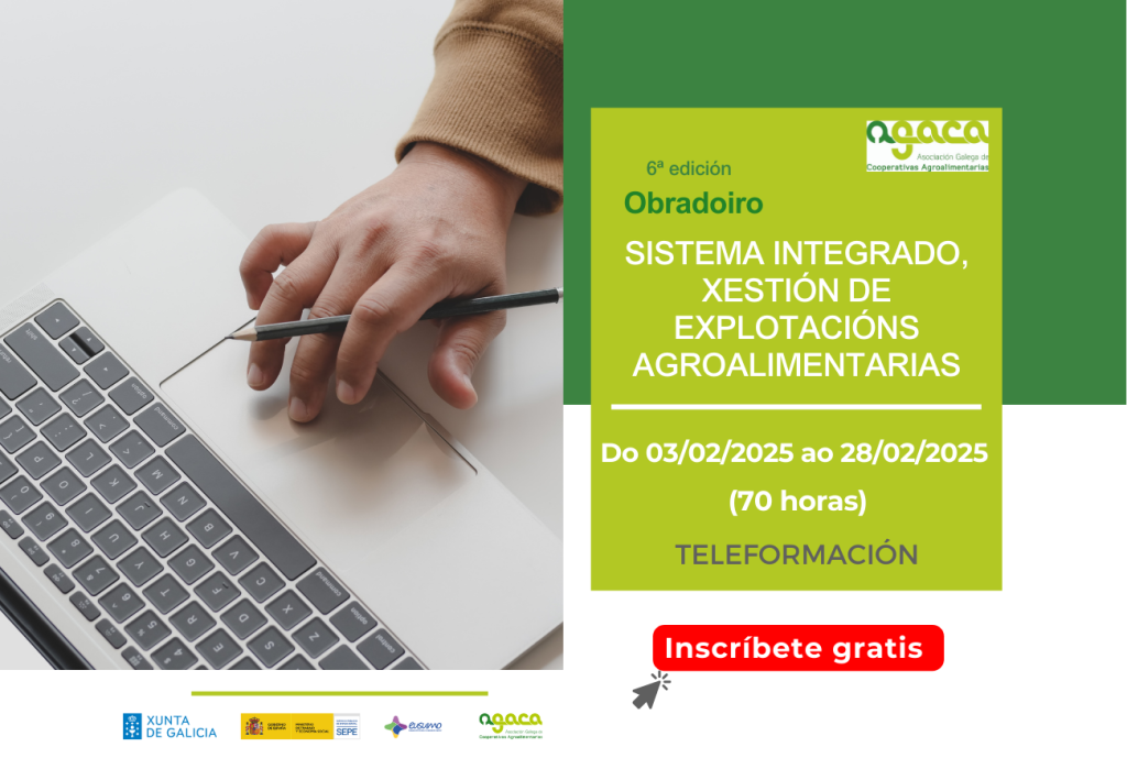 A Asociación Galega de Cooperativas Agroalimentarias (AGACA) pon en marcha un novo curso en liña de Incorporación á empresa agraria. Vacún de leite, que dará comezo nos últimos días do mes de xaneiro e se desenvolverá na plataforma de teleformación de AGACA. O prazo de inscrición xa está aberto e pode realizarse a través do […]