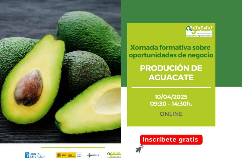 O 5 de marzo terá lugar a cuarta sesión do ciclo 2026 Xornadas formativas sobre oportunidades de negocio, dedicada á produción de aguacate. A inscricción é gratuíta. Para inscribirse é necesario completar este formulario. O 5 de marzo de 2026 terá lugar a xornada ‘Produción de aguacate’, de 09:30 a 14:30 horas. Contarase con profesionais […]