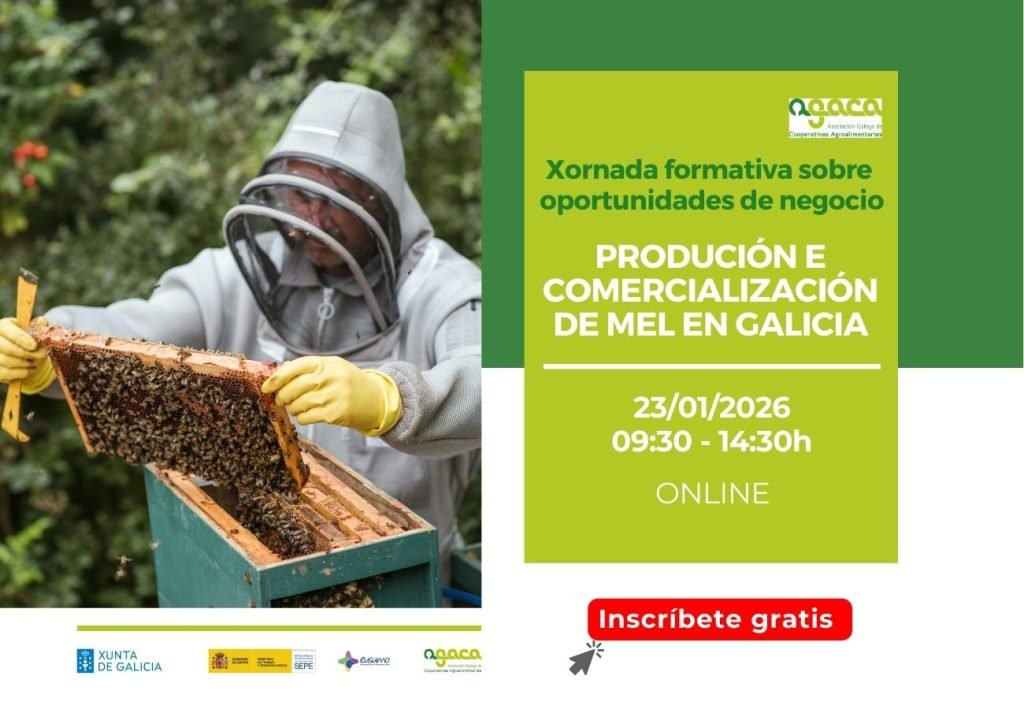 O 23 de xaneiro terá lugar a primeira sesión do ciclo 2026 de Xornadas formativas sobre oportunidades de negocio, dedicada á produción e comercialización de mel en Galicia. A inscrición é gratuíta. Para inscribirse é necesario completar este formulario. O 23 de xaneiro de 2026 celebrarase unha xornada dedicada á produción e comercialización de mel […]