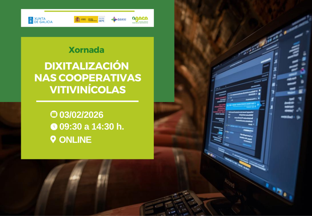 AGACA organiza o vindeiro 3 de febreiro de 2026 a xornada Dixitalización nas cooperativas vitivinícolas no marco da Rede Eusumo. Será unha sesión online orientada a ofrecer unha visión práctica e actual das tecnoloxías avanzadas aplicables ao sector, ademais de servizos que poden recibir as empresas e cooperativas vitivinícolas no que se refire á dixitalización […]