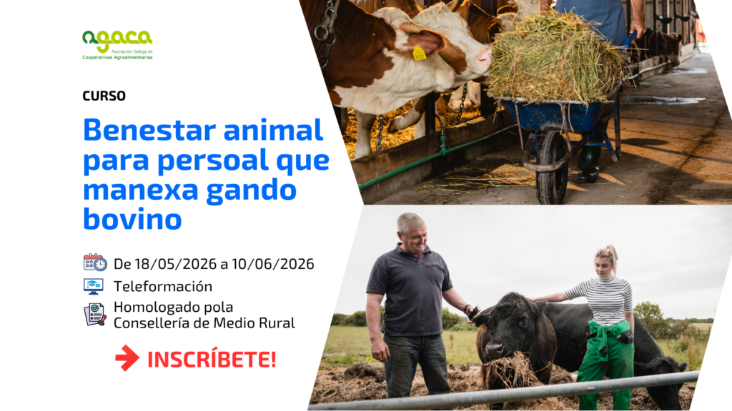 A formación en benestar animal é un requisito fundamental para garantir unhas condicións adecuadas de manexo dos animais vivos e para cumprir coa normativa vixente en materia de protección animal. AGACA imparte, entre o 18 de maio e o 10 de xuño de 2026, o Curso de Formación para persoal que manexa gando bovino, cunha […]