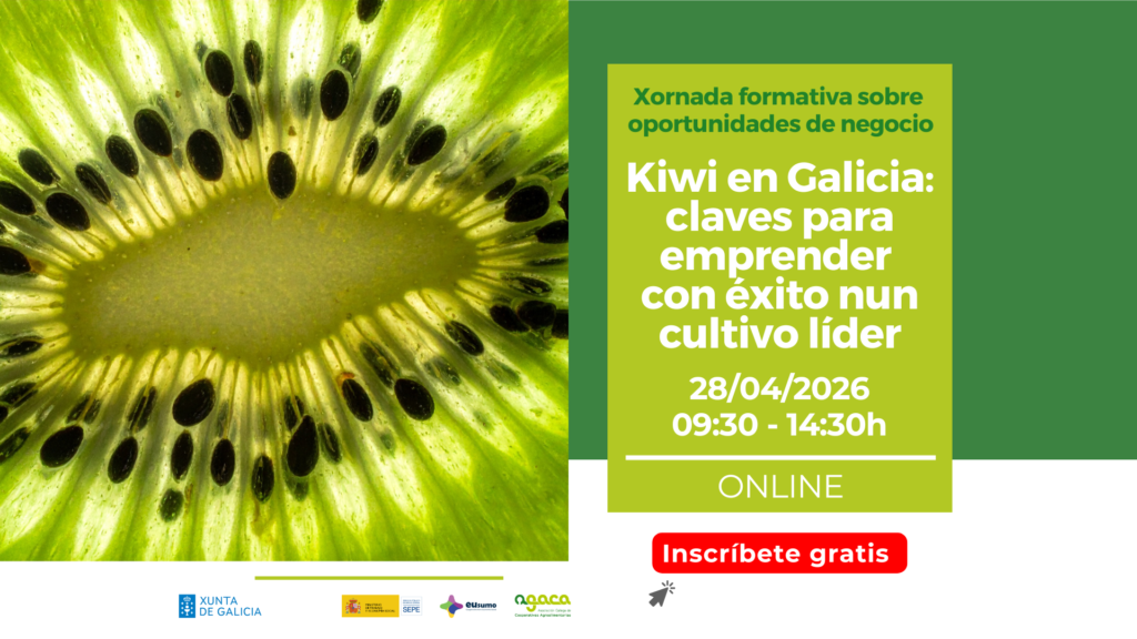 O 28 de abril terá lugar a sétima sesión do ciclo 2026 Xornadas formativas sobre oportunidades de negocio, co título “Kiwi en Galicia: claves para emprender con éxito nun cultivo líder”. A inscrición é gratuíta. Para inscribirse é necesario completar este formulario. O 28 de abril de 2026 terá lugar a xornada ‘Kiwi en Galicia: […]