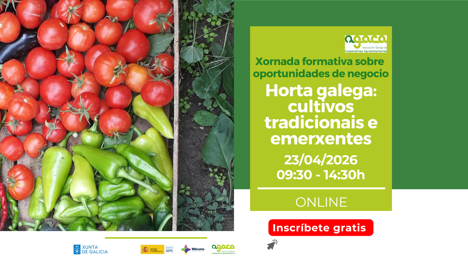 - O 23 de abril tendrá lugar la sexta sesión del ciclo 2026 Jornadas formativas sobre oportunidades de negocio, con el título “Horta galega: cultivos tradicionais e emerxentes”.